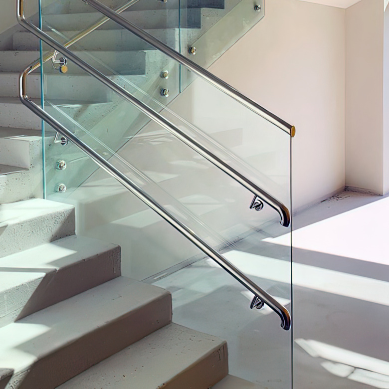 Для стеклянных ограждений используют либо однослойное закаленное стекло, либо триплекс. Первые чаще заказывают для частных домов и двухэтажных квартир.